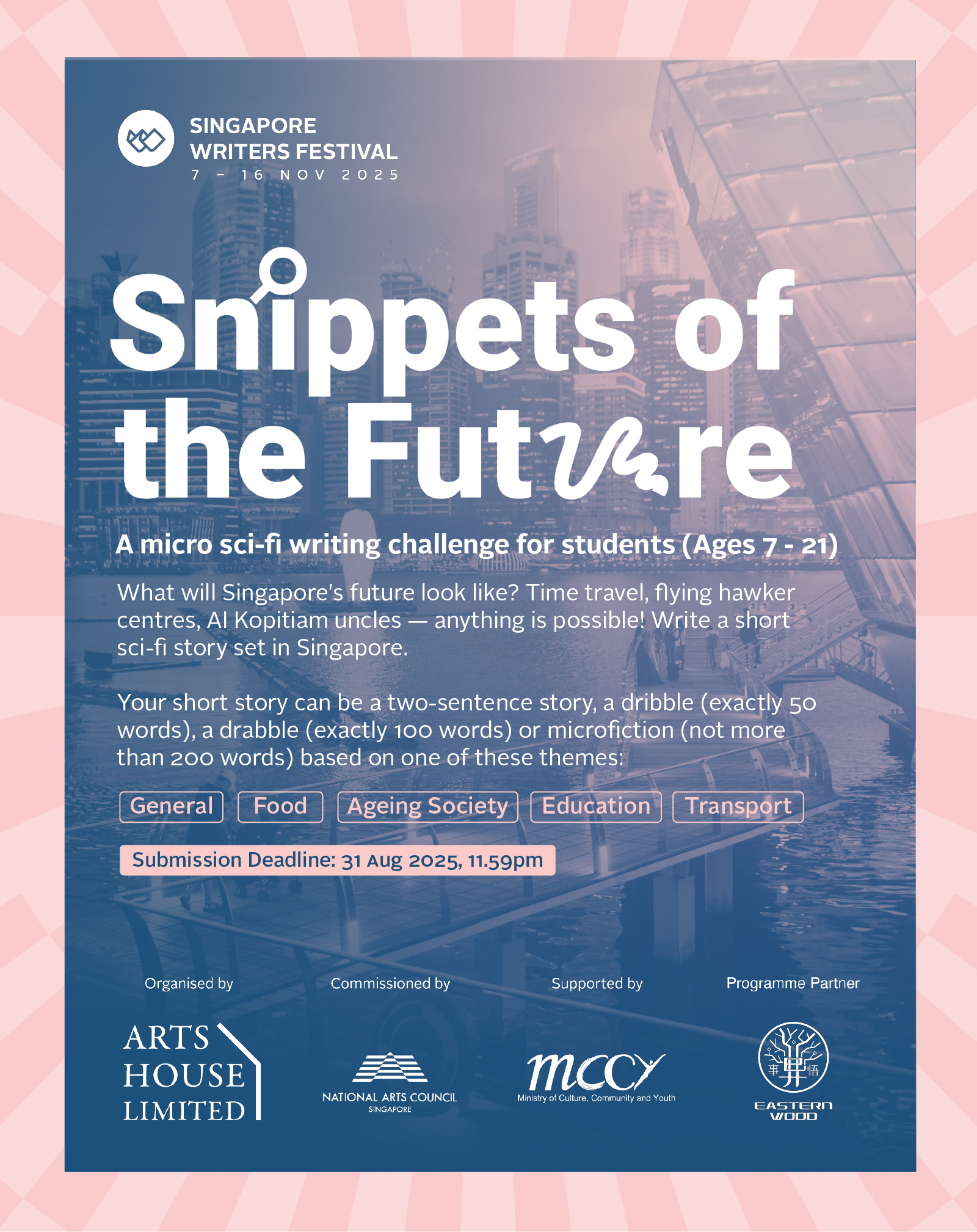 A micro sci-fi writing project for students, about what we envision for the future of Singapore. The project is organised by Eastern Wood, commissioned by Arts House Limited for the Singapore Writers Festival 2025.